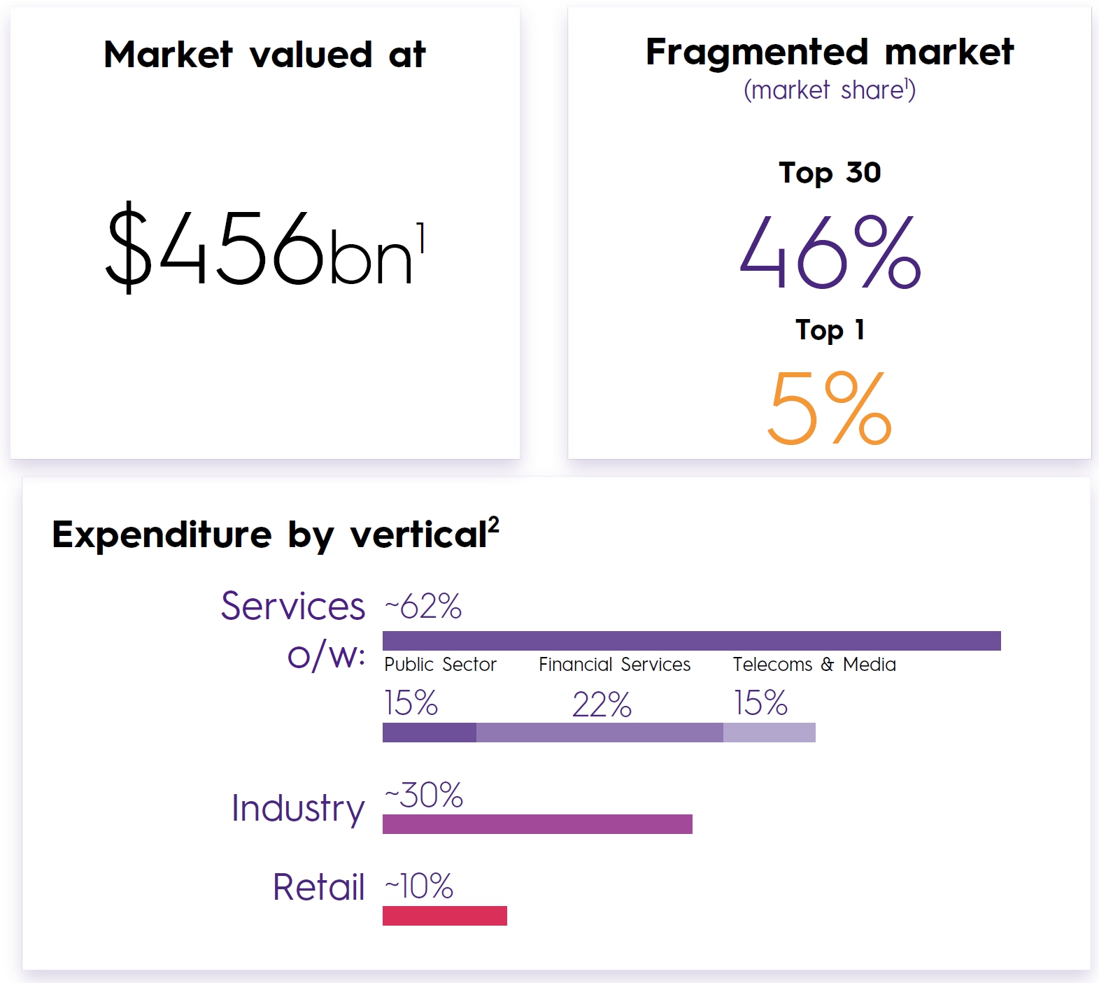 In 2001, the Internet bubble bursts, accelerating market changes. Clients are looking for global players capable of assisting them in transforming their businesses.