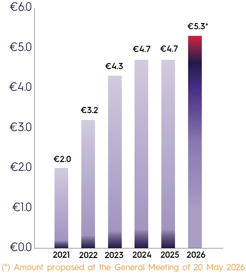 The General Meeting may also decide to distribute amounts deducted from the reserves at its disposal, expressly indicating the reserve items from which the deductions are made. However, dividends shall first be withdrawn from the profits for the financial year.” (Excerpt from Article 37 of the Articles of Association)