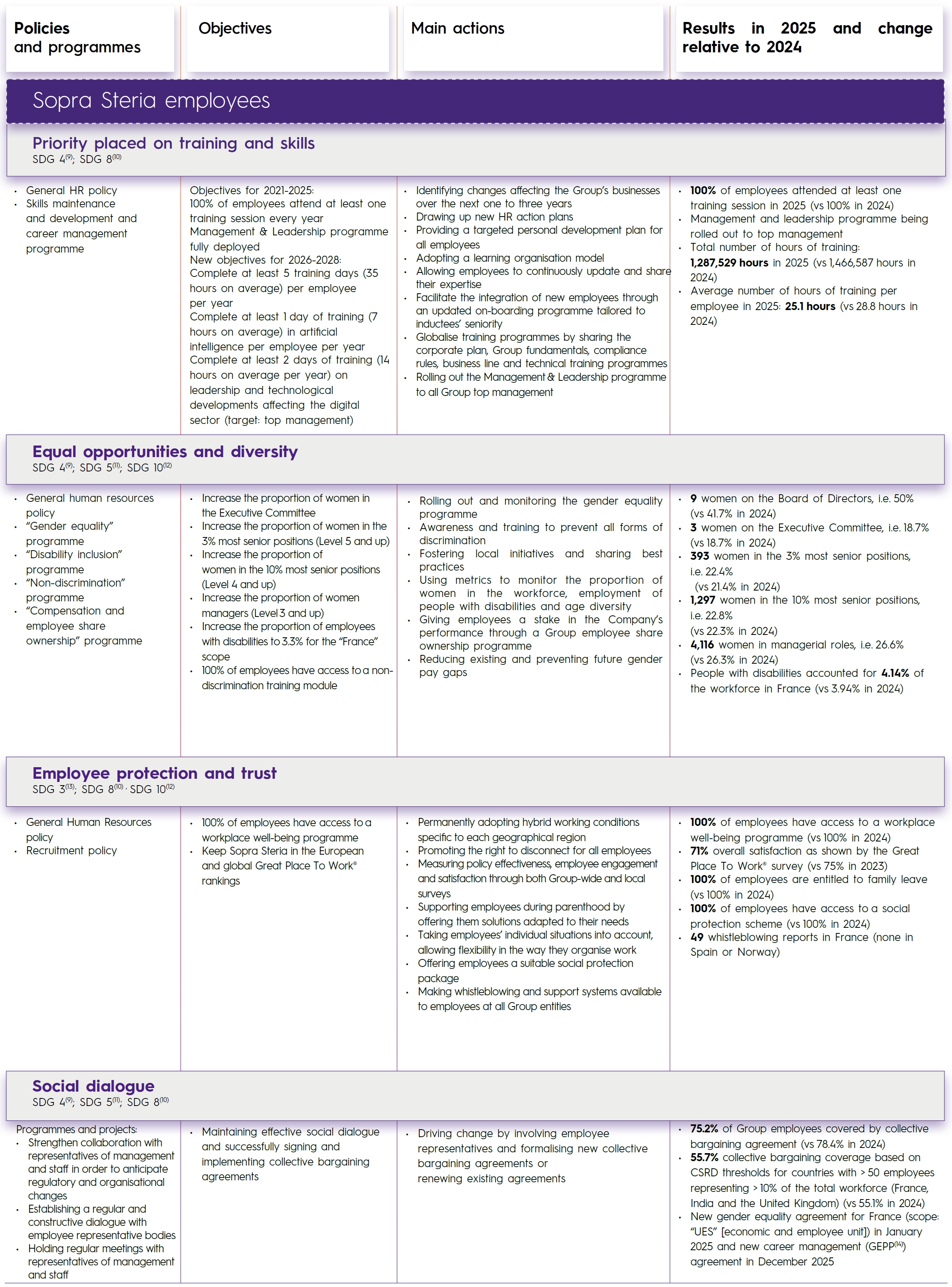 Sopra Steria is fully committed to managing its sustainability matters to ensure that it delivers as a responsible corporate citizen and meets its stakeholders’ expectations. The results achieved are testament to the Group’s tangible commitment to employees, the environment and society.