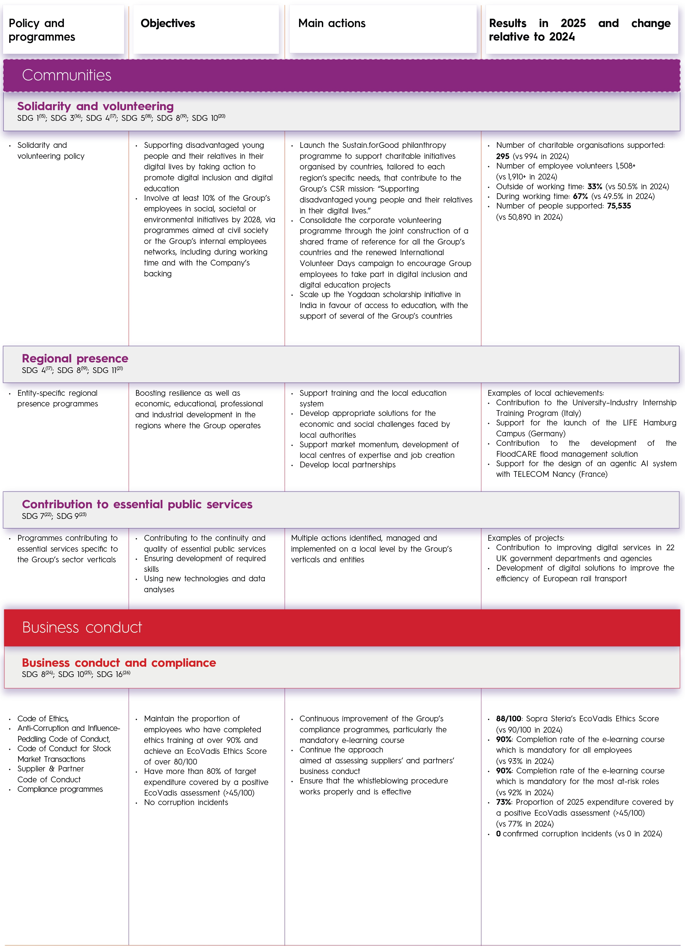 These priorities reflect Sopra Steria’s identity, strategy and business model, which are intrinsically linked to the quality of its relationships with its partners and the role of digital technology in society.