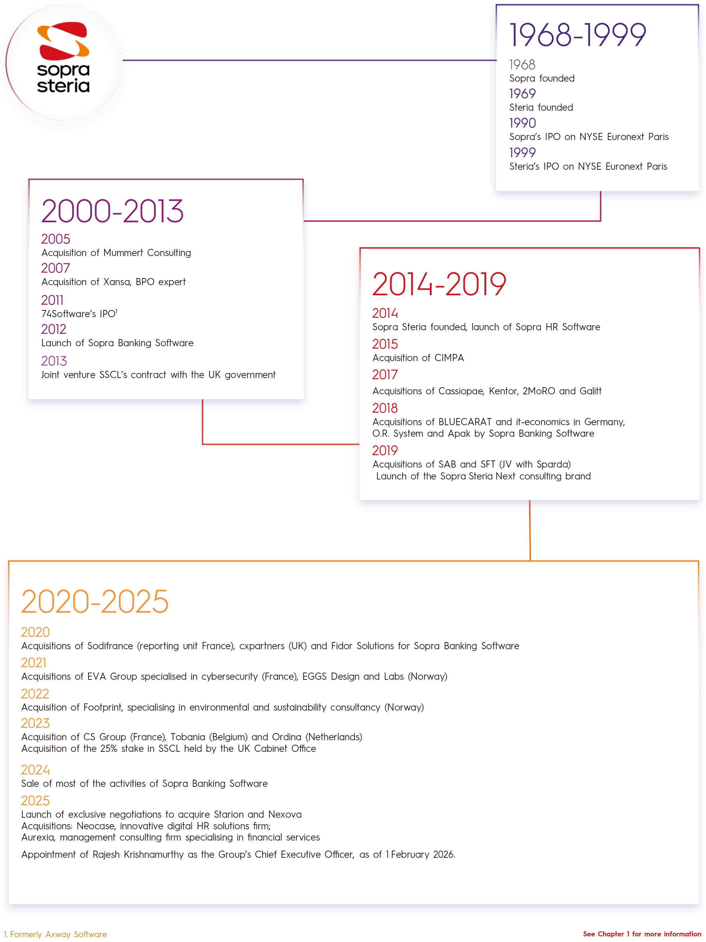Complementing each other in business strengths, strategic verticals and geographies while sharing a similar corporate culture, Sopra and Steria merge to give birth to Sopra Steria Group.