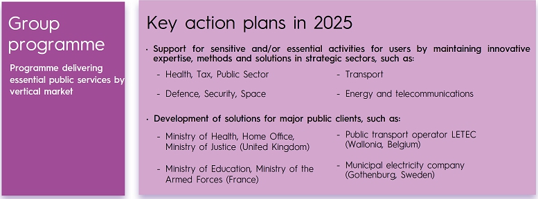 Sopra Steria is keen to establish itself as a European leader in digital services and position itself as a trusted, credible European alternative to global operators. The Group is developing and strengthening its foothold in four strategic markets (Public Sector, Financial Services, Defence & Security, Aeronautics & Space), where issues relating to sovereignty and responsible digital technology are becoming increasingly critical in Europe. To this end, it focuses on delivering high value-added solutions and an industrial and sustainable approach to implementing technology. The Group aims to act and innovate in such a way as to be able to influence how its stakeholders make use of technology.