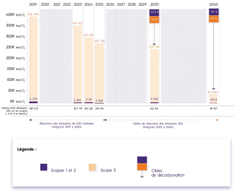 - Emissions verrouillées : estimations des GES générés par l’exploitation des actifs ou des produits à long cycle de vie, mesurés entre l’année de reporting et la fin de leur durée de vie opérationnelle