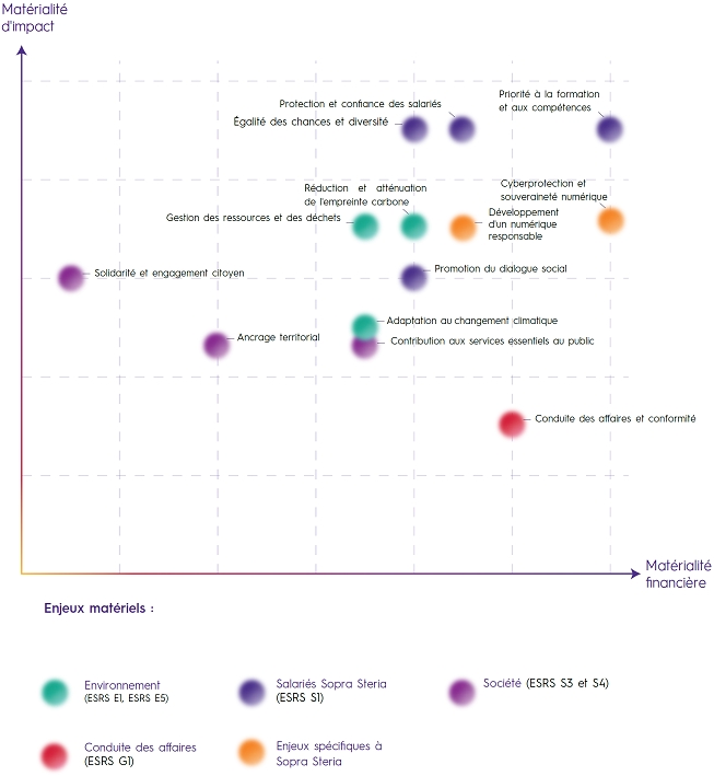 Sopra Steria a mené une analyse de double matérialité1 dont les résultats ont confirmé les priorités de l’entreprises, certaines identifiées de longue date, tout en apportant un nouveau regard sur sa chaîne de valeur.
